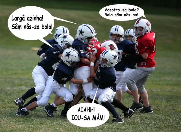 – Iou ta vai iscóla – Estou a ir para a escola ou Vou à escola.